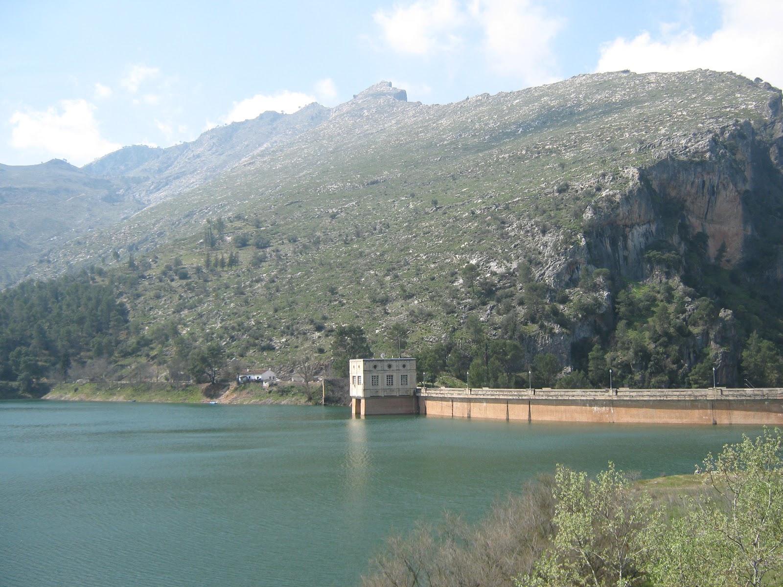 Fotos 1 y 1a: Embalse y presa del Tranco de Beas -río Guadalquivir- en la Sierra de Cazorla (destinada a la producción de energía hidroeléctrica).